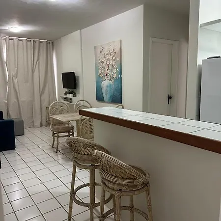 Flat Praia Candeias, Piedade 累西腓设有大厨房和配卫星频道平板电视,电视 和气候控制的客房. 这家公寓距离博阿·维亚任广场有7公里,距离瓜拉拉皮斯购物中心有2.2公里,邻近Sitio Piuta.